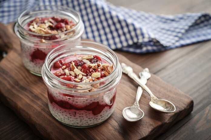 Snídaně: Ovesná granola s mandlemi, jogurtem, horkými višněmi a tymiánem