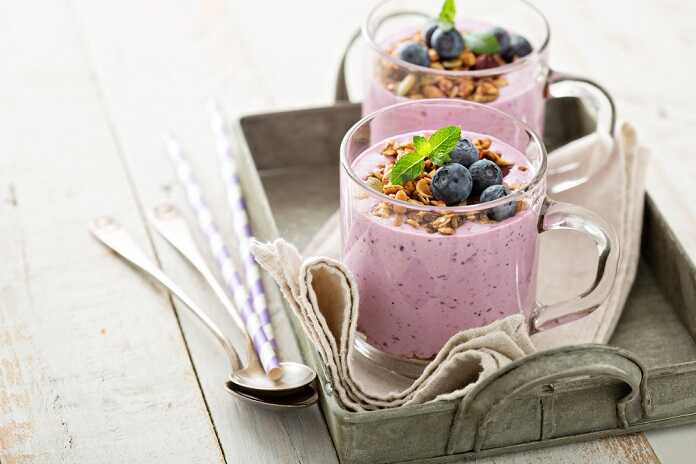 Snídaně: Borůvkové smoothie s domácí ořechovou granolou