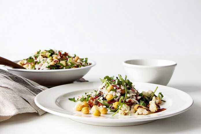 Večeře: Orientální salát s rýží, cizrnou a pečeným květákem