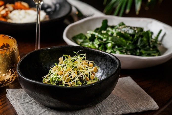 Večeře: Salát z mořských řas s pečenými batáty a luštěninovými klíčky