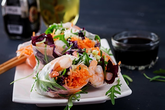 Večeře: Zeleninové závitky s tamari, krevetami a rýžovými nudlemi