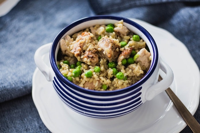 Oběd: Celozrnný bulgur s krůtím masem, hráškem a fenyklem