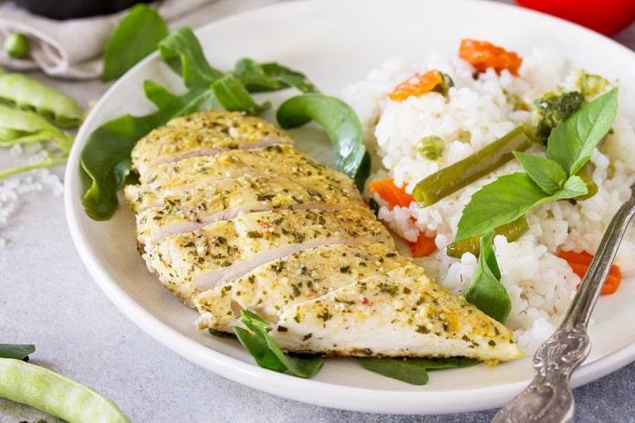 Oběd: Grilované krůtí prso s rýží a dušenou zeleninou
