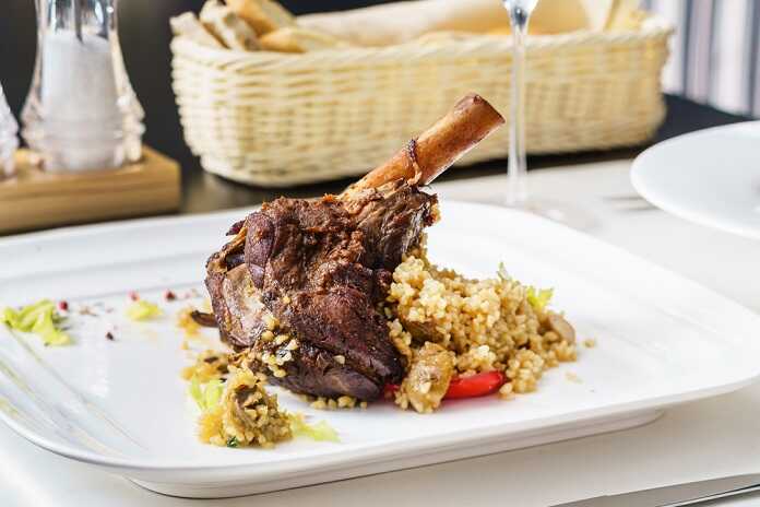 Oběd: Pečená jehněčí kýta s jáhly a zeleninovým ratatouille