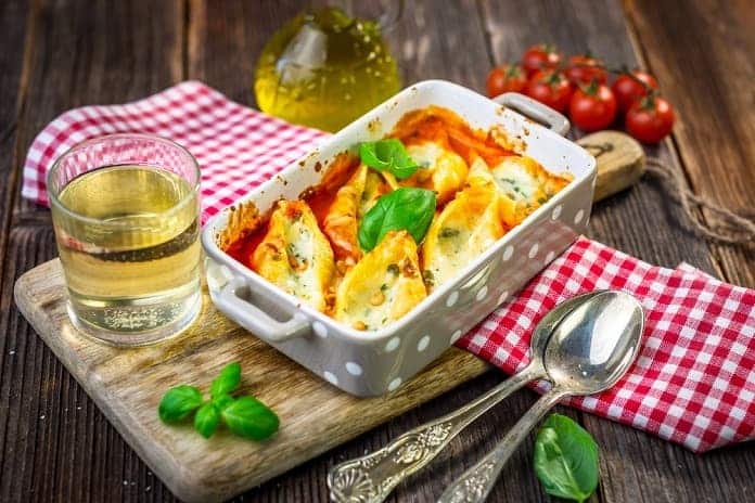 Večeře: Zapečené celozrnné těstoviny s rajčatovou omáčkou a ricottou