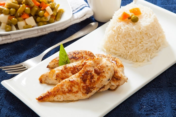 Oběd: Pečená kuřecí prsa s rýží a kořenovou zeleninou