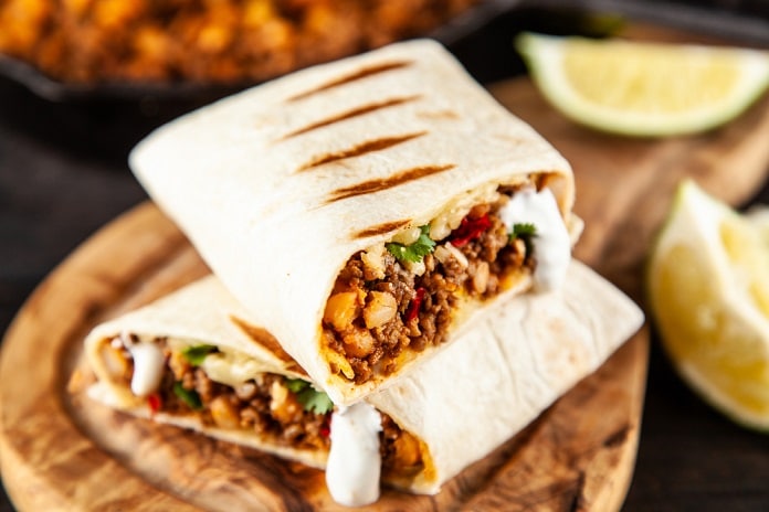Oběd: Pšeničná tortilla plněná fazolovo-zeleninovou směsí