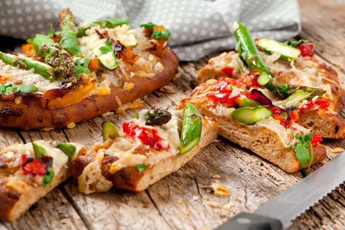 Večeře: Celozrnná pizza s rajčatovou omáčkou, grilovanou zeleninou a mozzarellou