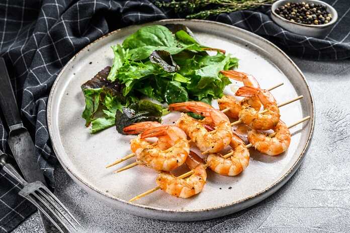 Večeře: Grilované krevety s bylinkami a listovým salátem