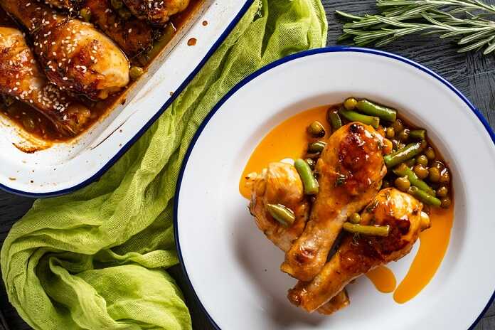 Oběd: Krůtí paličky s celozrnným kuskusem, fazolky podušené s mrkví