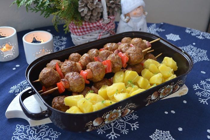 Duo máma a syn z Pojďme vařit pro vás připravilo i rychlý recept z jednoho hrnce. Vytvarujte kuličky, přidejte bylinky, slaninu, brambory a dejte péct. Tak snadné to je!