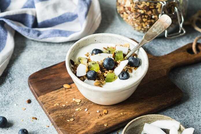 Snídaně: Ovesná granola s borůvkami a kokosovými chipsy