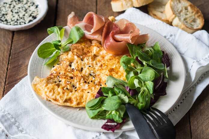 Večeře: Vaječná omeleta s libovou šunkou a zeleninovým salátem, celozrnné pečivo