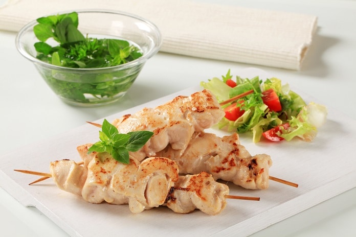 Oběd: Kuřecí špíz s pečeným bramborem a zeleninovým salátem