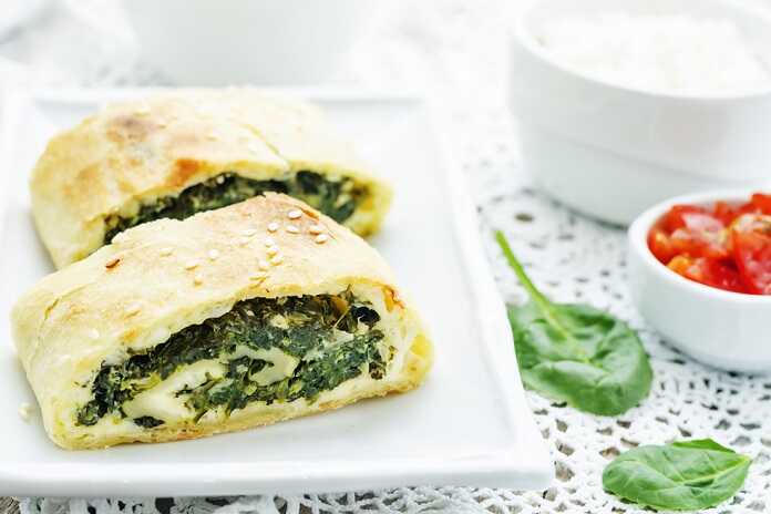 Večeře: Slaný závin z listového těsta s baby špenátem, žampiony a mozzarellou
