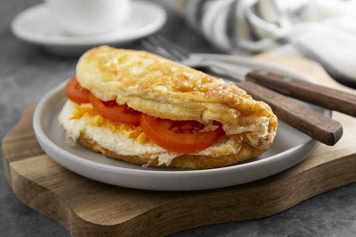 Snídaně: Vaječná omeleta s nízkotučným tvrdým sýrem, rajčaty a paprikou