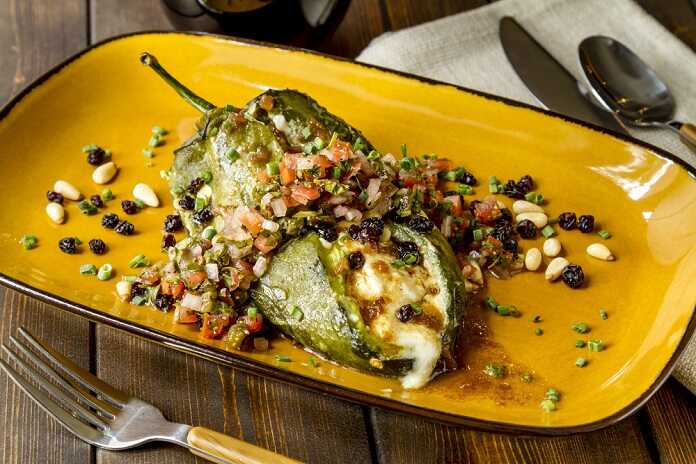 Oběd: Papriky plněné mletým hovězím masem, rostlinným sýrem a pikantní zeleninovou směsí